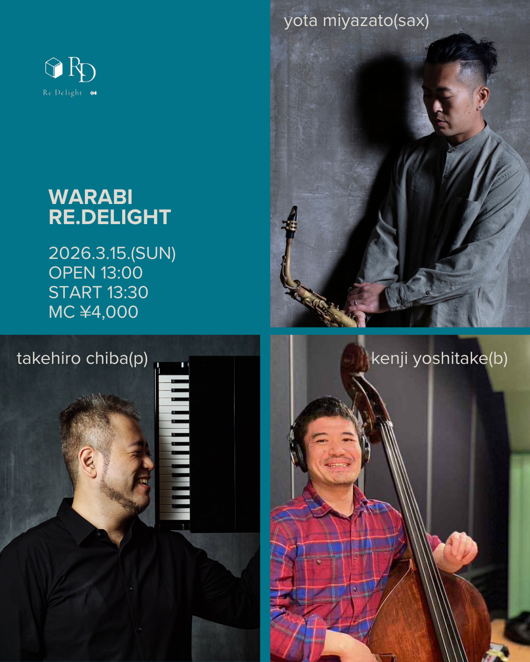 河野祐亮(pf) 小美濃悠太(b) 大津惇(ds) guest:宮里陽太(sax)